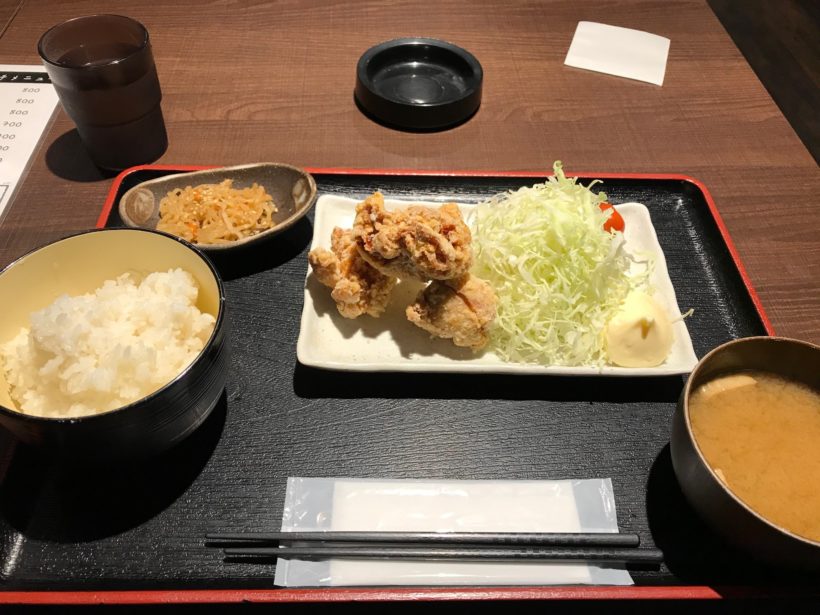 唐揚げ定食を注文です。