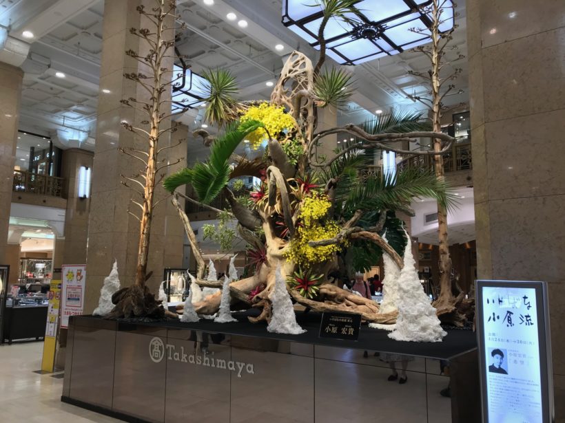 帰りに高島屋に行ったら、小原流いけばなの家元の作品が飾ってありました。