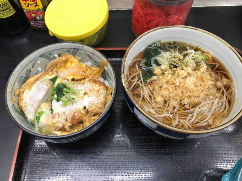 カツ丼のご飯量は200g位、それにそばなのでかなりの量です。