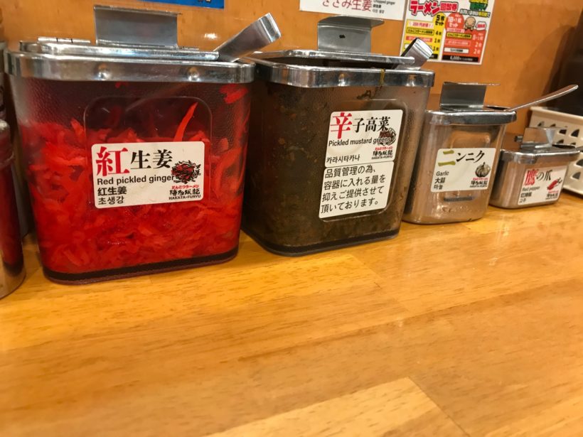 替玉もかためで注文し、カウンターには色々おいてあるので、