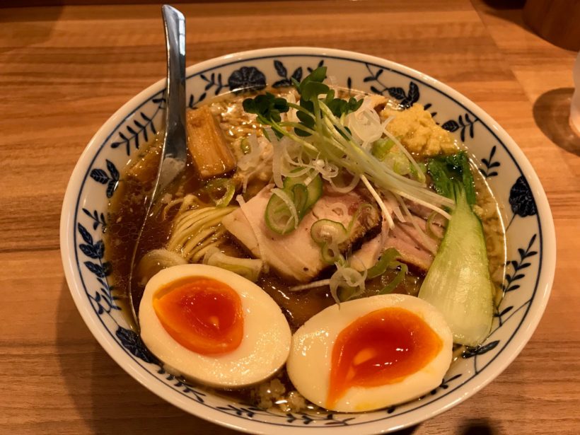 おじさんはせっかくなので全部入りの特製生姜醤油ラーメン。