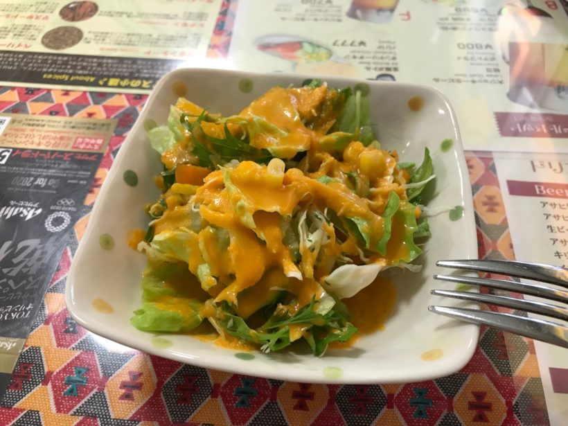 ソフトドリンク、サラダがついて800円。お安い。