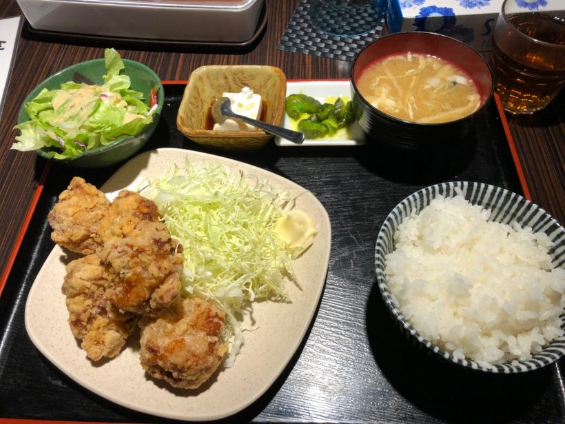 いつもの唐揚げ定食を注文。ほかのお客さんも唐揚げ率が高いです。