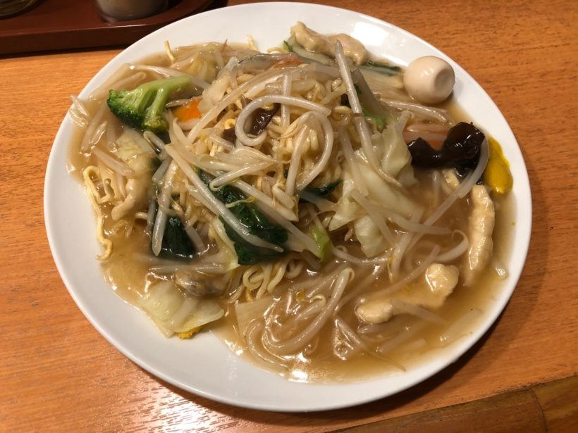 あんかけがおじさんの好みと違い、もやし入り。
