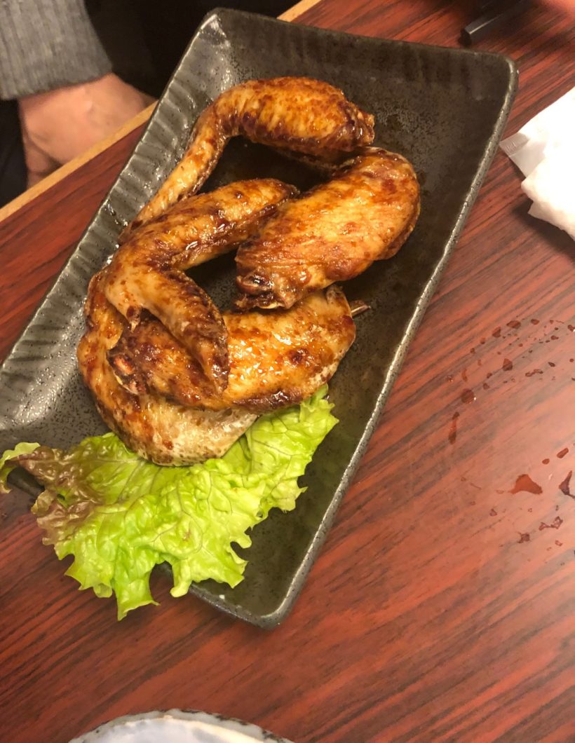 串は結構食べたので、揚げ物と手羽先でまた一杯。