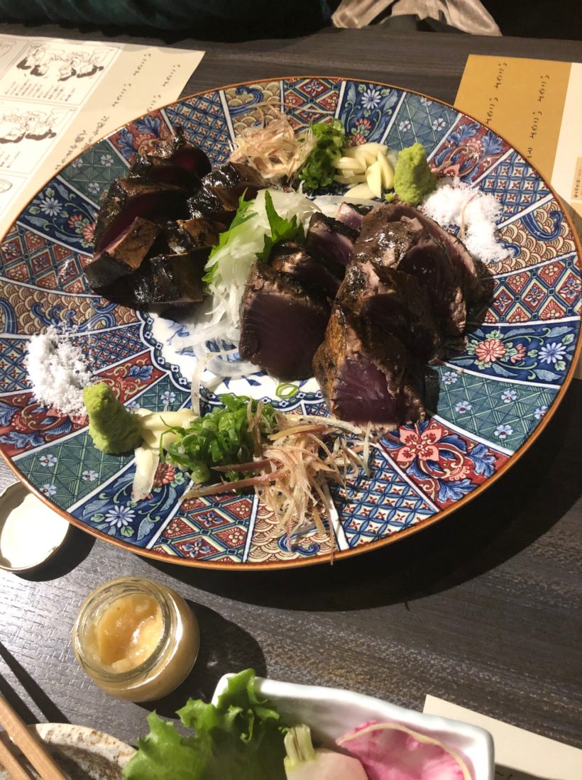 藁で焼いてすぐに出てきたので、カツオは少し暖かい。