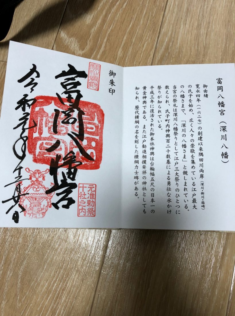富岡八幡宮のご朱印は、神輿のスタンプ付き。