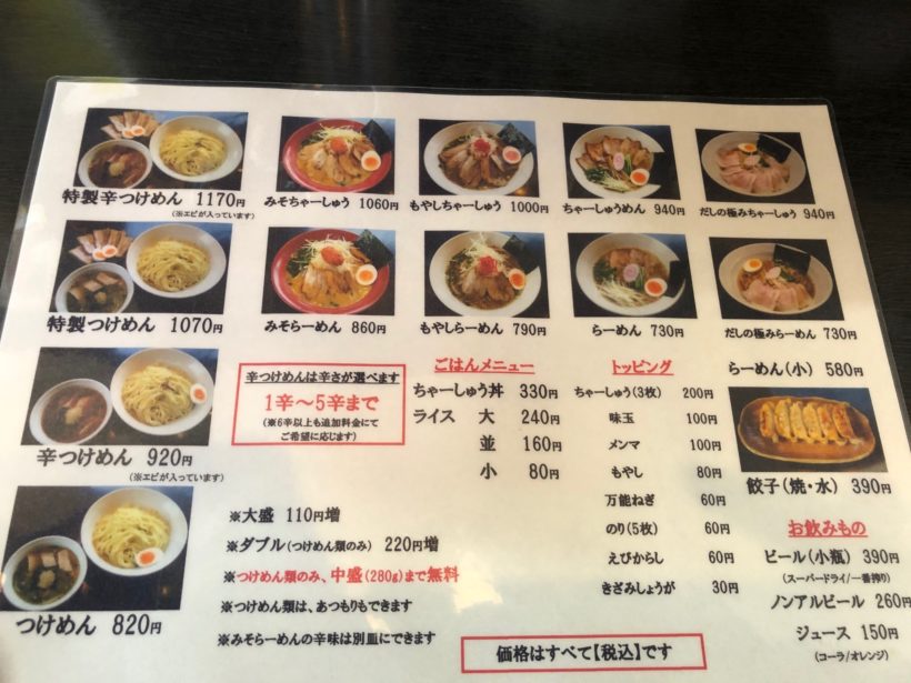 メニューには澄んだスープのラーメンがありました。