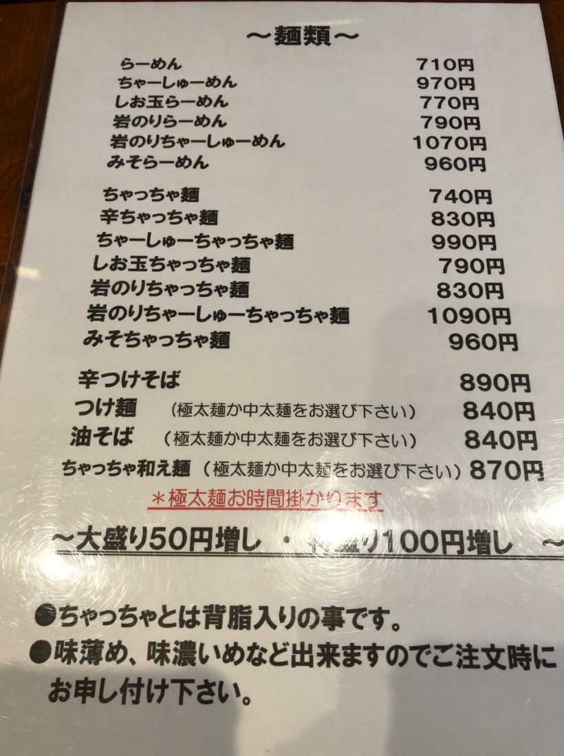 寒い日は背油が欲しくなるので、ちゃっちゃを注文。
