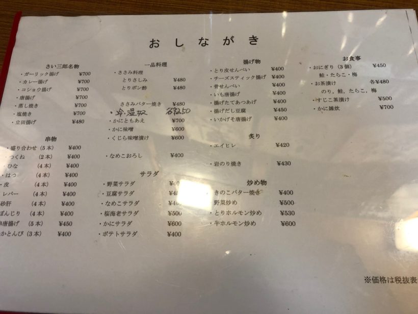 刺身のメニューも豊富なので、日本酒と刺身が食べたくなったら