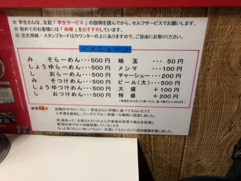 メニューも当時からつけ麺があって、新潟ではつけ麺の先駆け。