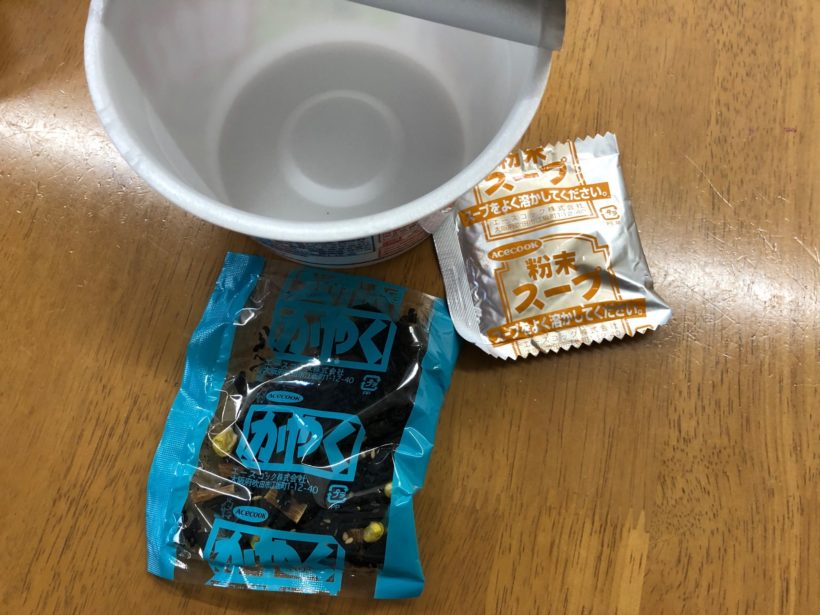 麺がないだけで、かやくとスープは同じ。