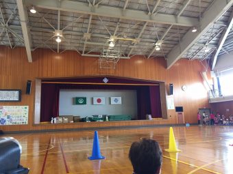 校舎を移転した日和山小学校の体育館でした。