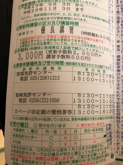 免許の更新のお知らせが届きました。