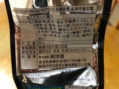 「じゃがいも、植物油、食塩、調味料等」ですが、これは