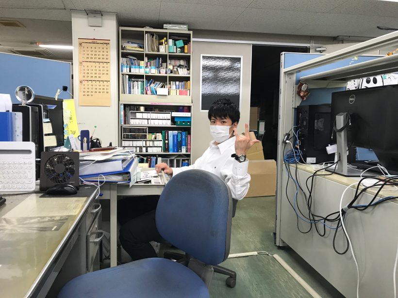 営業部内での席替えで、えんどぅ君が斜め前から隣の隣に移動しました。