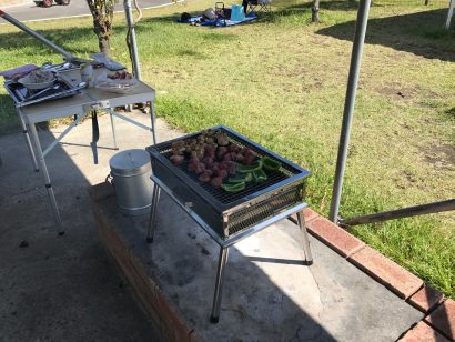 休みは、上堰潟公園で子どもの友達も連れてバーベキュー。