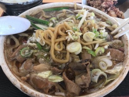 少し持ち上げると出てきた麺は、かなりの太麺。
