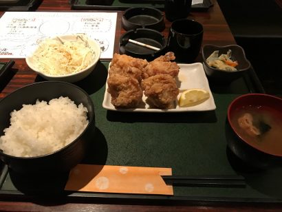 ちょうどおじさんは、唐揚げ定食を頼みました。