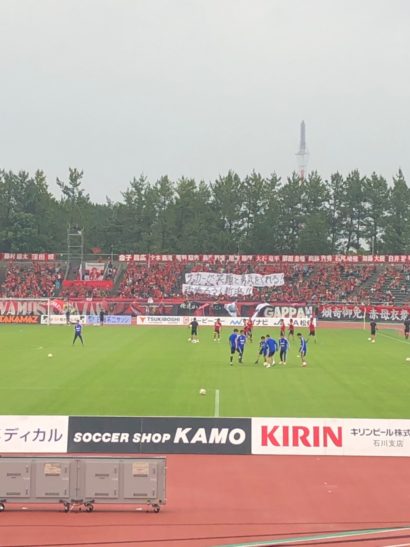 金沢サポーターから先日の地震に対するメッセージが掲出されました。