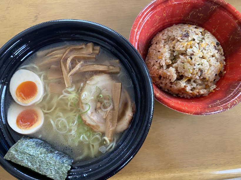 しおらーめん、半チャーハン、メンマ味玉トッピングで、