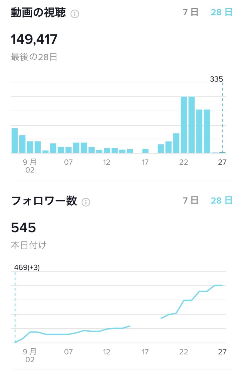 ここで僕のTikTokアカウントのインサイトを見てみましょう。