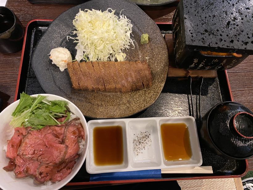 タツヤ「牛カツ130gのローストビーフ丼ハーフセットで」