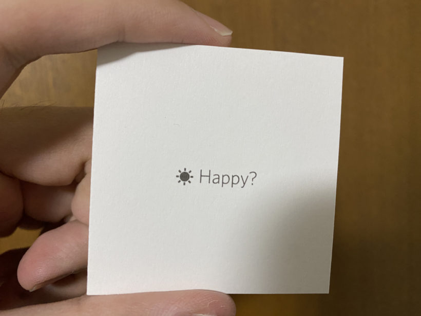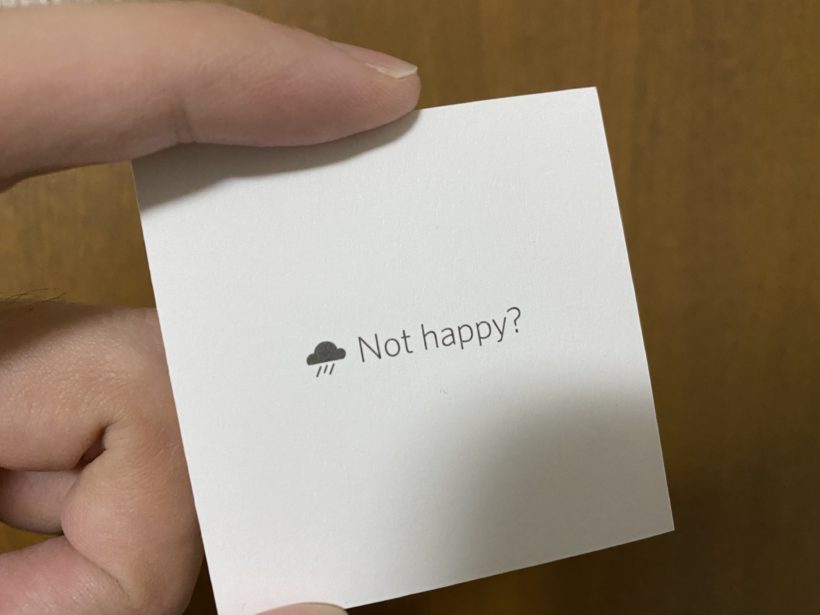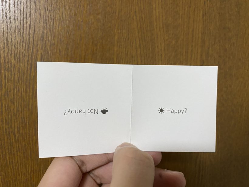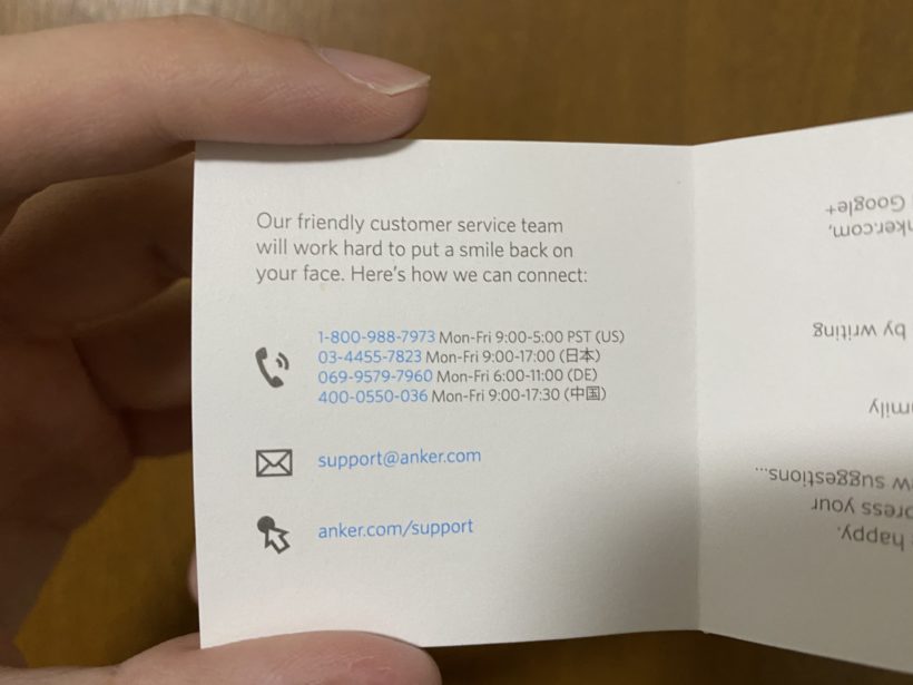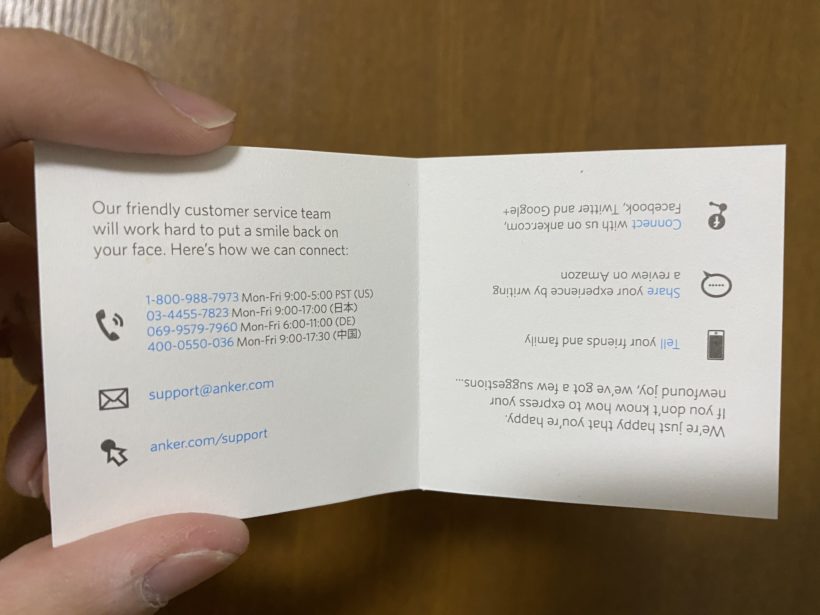 Anker製品には『Happy Card』という紙が製品に同梱されています。「Happy?」の面から開くと良かったら友人や家族にご紹介くださいという内容、「Not Happy?」の面から開くとカスタマーサポートの連絡先が書かれています。少しでも多くの方に”Happy”から開いて頂けるよう今年も頑張ります! pic.twitter.com/oQgQa4m7xP