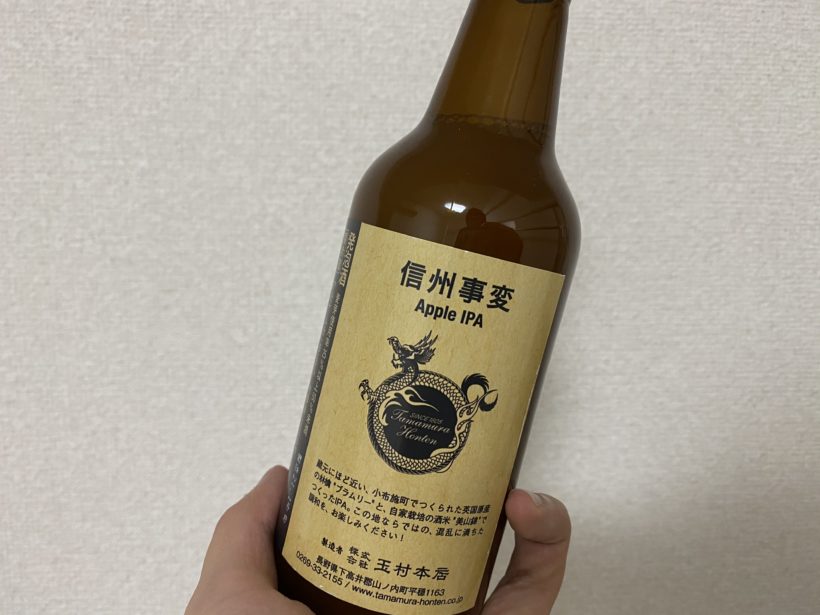 近所の酒屋さんで完売前になんとか手に入れた志賀高原ビール『信州事変 Apple IPA』。小布施町でつくられた林檎と、自家栽培の酒米"美山錦” でつくられたIPA。爽快でいてとにかくトロピカル。どよ〜んとしてた気持ちがいい感じにぶっ飛びました。うまい。 pic.twitter.com/QIcn18DolG