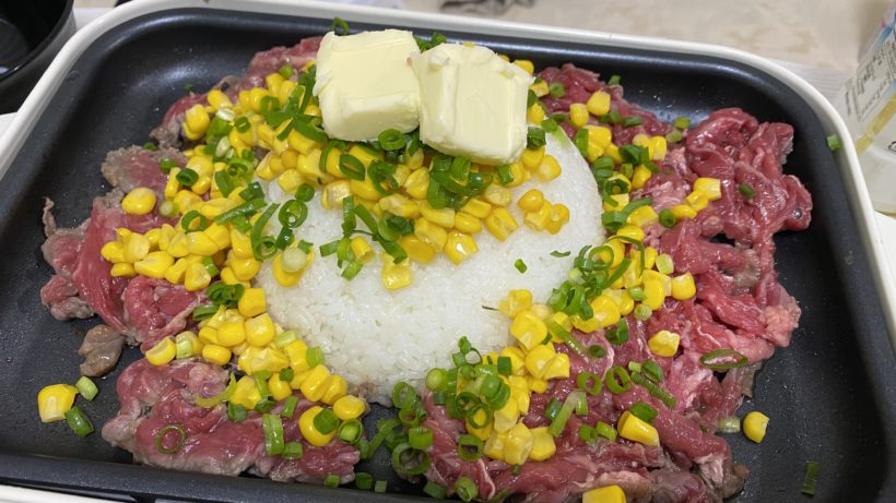 あとはコーン、青ネギ、バターを適当に乗せて、