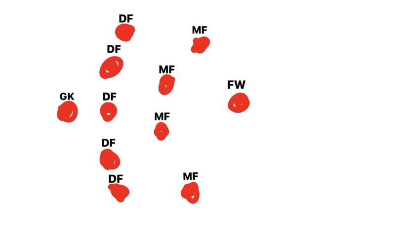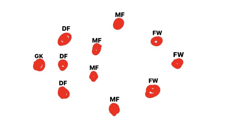そしてFWの2枚が降りて左サイドハーフと右サイドハーフの位置へ。