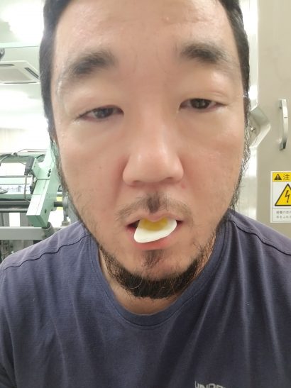 結局目玉焼き風のグミを頬張るヒゲおじさんの図