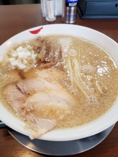 ランチに背脂ラーメン大盛を食べたんだよ。