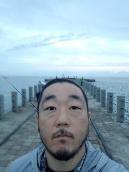 ただ振り返るとジグ単のアジングらしきしてる人がなにやら魚を揚げている。
