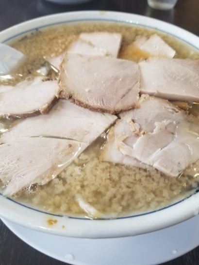 背脂ラーメンの元祖的存在の杭州飯店のチャーシュー麺っしょの図