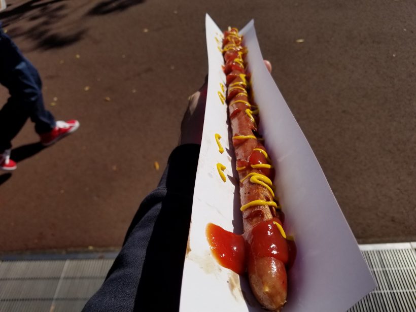 つまり日本一長いフランクフルトと謳われていた60センチのフランクフルトこそオレにうってつけの食べ物であると思うのだけれども、もっとわかりやすく横から写真撮ってもらえばよかったのに、何故か単独行動してる時に買っちゃったもんだから、こんな写真しか撮れなかったのだよの図