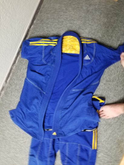 本日の練習を終えてオレの心と体と同様にクタクタとなった柔術着だよの図