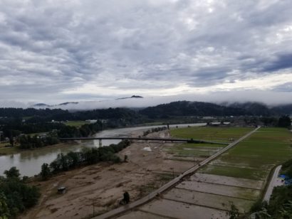 サービスエリアから見た信濃川の様子は先週の台風の傷跡がまだまだハッキリと残っているわけでの図
