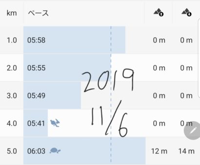 キロ6分切りが当たり前な。