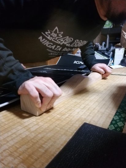 岩手の天然木を職人の手で1本1本削りから磨きまで行われてるらしい木。