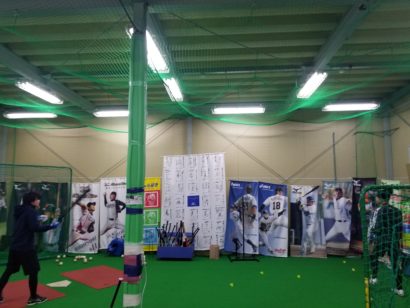 ネットに向かってのティーバッティングから、バドミントンの羽を打つミート練習。