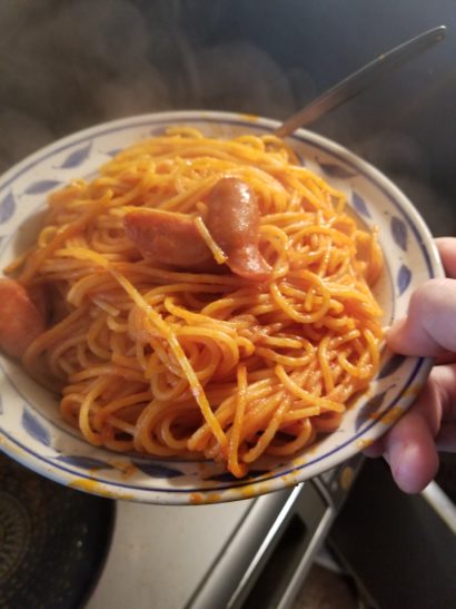 もうちょっとケチャップを使ったナポリタンに寄せていきたいな。