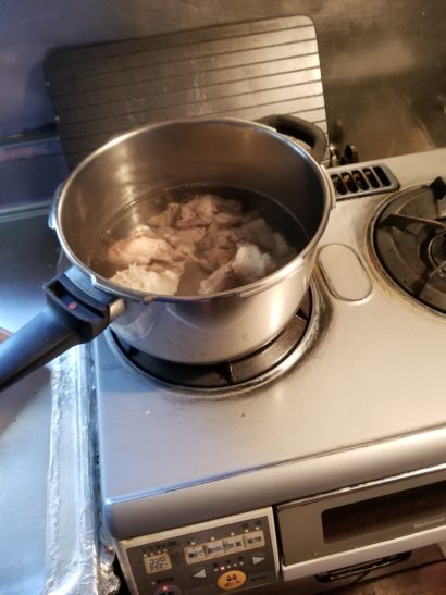そして茹で汁をしっかり冷ました時に浮かんでる白く固まった脂も。