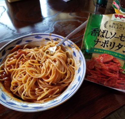 その間、残ったお湯の中にレトルトのソースを入れて温めておく。