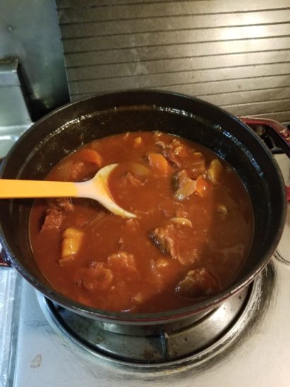 最後の仕上げにデミグラスソース入れてショッパめにすればビーフシチューに。