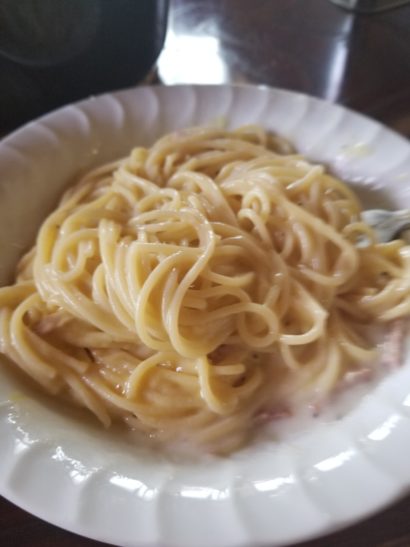 そんじょそこらのシャバシャバなソースとは違う濃厚で美味しいカルボナーラだよの図