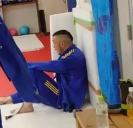 さらに相手の膝を両足で挟み込み(外掛け注意)相手の膝が外側に倒れるような方向に倒れ込み背筋を使って伸ばす。