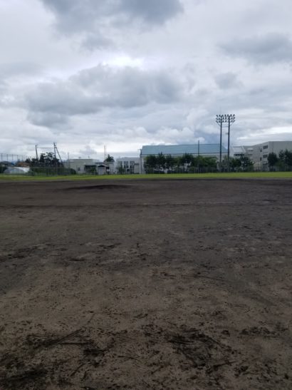 どんよりと曇っているけれど問題なく最後まで野球はできたよの図@味方野球場