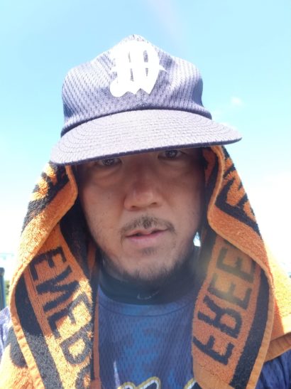 本日はダブルヘッダーということでこまめな水分補給と濡れタオルで頭や首回りを冷やすのを忘れないぜの図