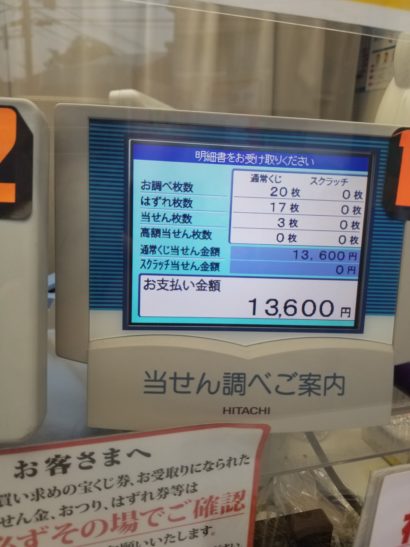 チャンスセンターの人に確認お願いします、と20枚渡す。
